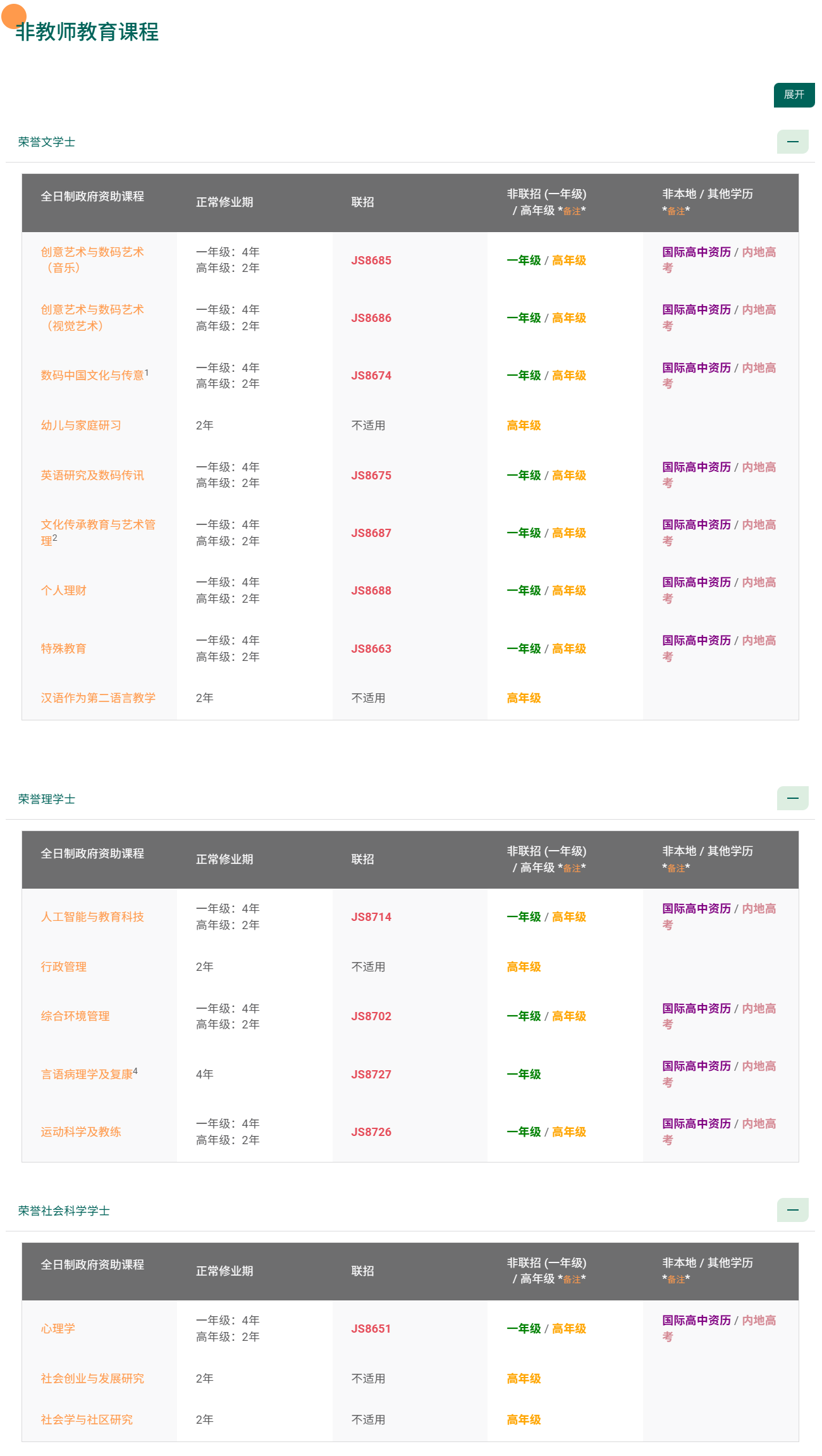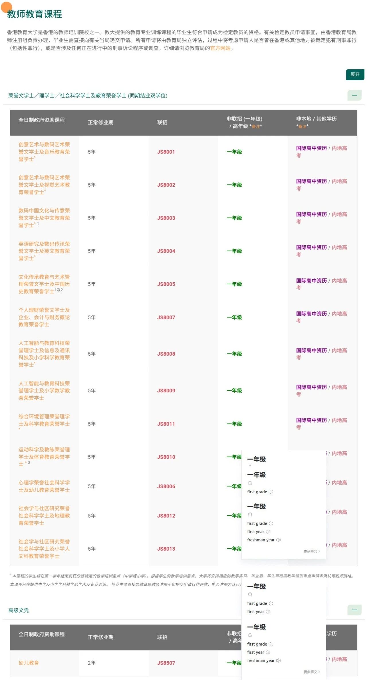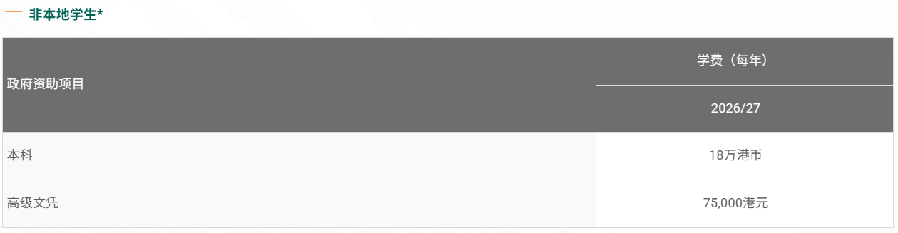 港教大26年内地本科招生信息 招生政策 教大欢迎内地应届高考生申请来港入读本科专业。教大实行自主招生,不影响学生填报内地高校志愿。学生报读教大的同时,亦可填报其他内地重点高校,两者并无冲突。若学生未获教大录取,会返回内地统招系统,因此仍有机会在本科第一批本科录取时获其他重点大学考虑。 根据国家教育部与香港特别行政区教育局的协议,香港院校在内地自主招生必须于7月7日*或之前完成录取工作。被香港高校录取的申请人将不再获得内地高校或参加内地统一招生高校录取的资格。故此申请人接受香港高校录取前,务必清楚明白并接受有关安排。 * 不同省市的投档日期及安排各有不同,相关具体流程将依据教育部宣布之高考及录取政策作出及时调整。大学亦会根据实际录取情况而提前结束录取工作。 招生日程 2025年10月2日起至2026年6月12日中午12时正(北京时间)。 招生对象 申请人必须为内地31个省市/直辖市/自治区的应届高考生 (包括复读生)。各省市并没有固定的名额分配,教大会综合考虑申请人的高考成绩及面试表现(如适用),择优录取。 入学要求 申请人必须在应届全国普通高等学校统一招生考试中的成绩达到以下要求: 总分(不含加分)达到所属省市的一本线以上或特殊类型招生控制分数线*;及 高考英语分数达120分或以上(满分为150分)。而以中文作为主要授课语言的专业 (详情请参阅「课程总览」),英语分数最低要求为110分(满分为150分)。 *不同省市的入学分数线名称或有不同,以大学要求为准。 申请方法 申请人最多可选报两个专业,并按个人的意愿于报名时在申请系统上选定第一志愿课程,申请人必须先递交第一志愿的申请,才可报读第二志愿的专业。 申请人宜慎重选择报读的专业,大学会优先处理申请人的第一志愿。 当申请递交后,每位申请人只有一次更改志愿的机会。所报专业于截止日期后将不能更改。 费用 每位申请人可用港币300元正报读最多两个专业,申请费会于报读第一志愿时全数收取,当申请人递交第二志愿的申请时,系统会自动豁免第二志愿的申请费用。入学申请费一经缴交,恕不退还。 2026/27学年非本地学生本科全年学费为港币180,000元(约人民币16.5万元),高级文凭为港币75,000元。 奖学金及助学金 香港教育大学提供各种类型的奖学金。有些开放学生申请,有些则通过提名(即学生无需申请)。 香港教育大学设置了众多的助学金及贷款项目如下: 课程列表