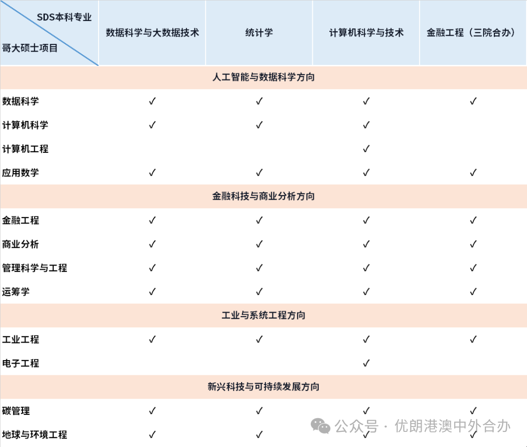 硕士项目的选择受本科专业限制。