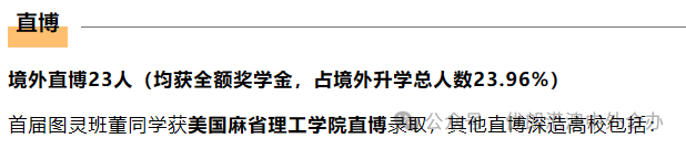 且南科大在计算机这个专业的升学率高达80%,尤其是在海外申请美国top级别高校的直博数量上,那是比肩很多强985的,甚至在有的年份不亚于华东五校,像麻省理工、卡内基梅隆,这些顶尖名校的直博其实很难申请的;