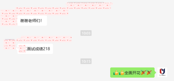 培训效果:提供系统化、标准化全闭环培训,从面试礼仪、流程讲解,到知识体系构建、答题思路拓展,再到高强度全真模拟、心态调节指导,学员知识结构全面完善,答题能力跨越式提升,临场应变与心态把控能力显著增强,以218分高分脱颖而出。