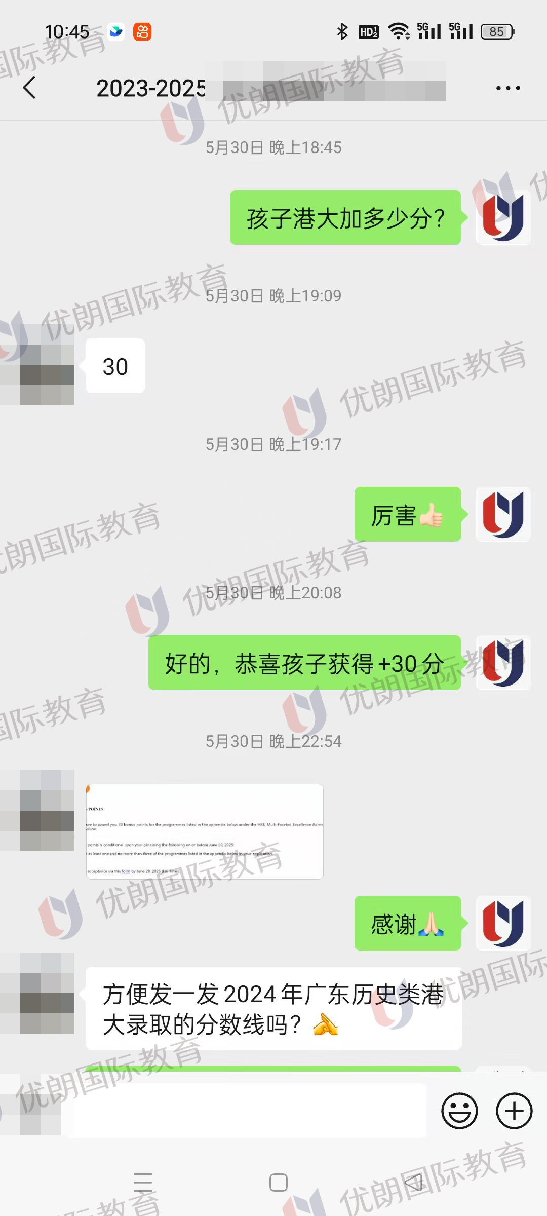• 最终结果:成功获得25分加分,收到港大官方加分通知,经优朗老师专业指导后,明确升学方向,坚定入读港大。